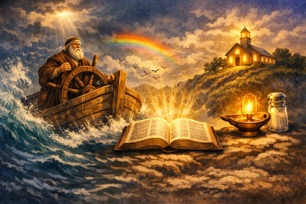 Somos chamados a viver com fé responsável em meio ao caos deste mundo. A Palavra de Deus nos guia em escolhas sábias, fortalece nossa integridade e nos prepara para transformar gerações. Assim como Noé, precisamos remar contra a correnteza, confiando que o Criador segura o leme e nos conduz ao Seu propósito.